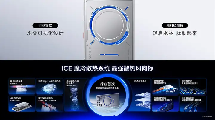 红魔 11 Pro+ 还通过更多配置来完善用户体验,它的悟空屏 2.0 不仅屏占比高达 95.3%,还有 144Hz 刷新率、360Hz 全局采样率和 3000Hz 瞬时触控采样率,配合 MagicTouch 3.0 触控技术和 520Hz 肩键,能在游戏中实现更快的响应。而在机身背面,能看到产品首创的“风水双冷”架构,这是在行业中首次将风冷和水冷同时应用到了手机上。